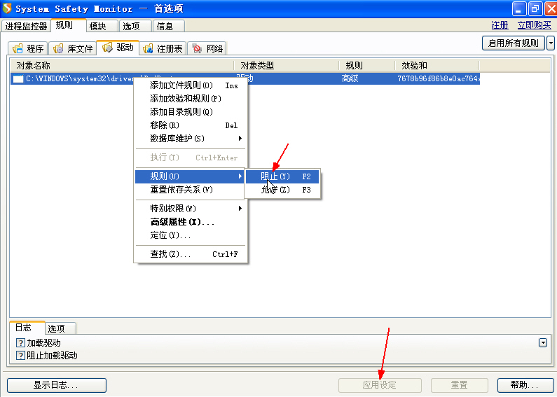 右击“驱动”窗口中的任意一处,点击弹出菜单中的“添加规则”。