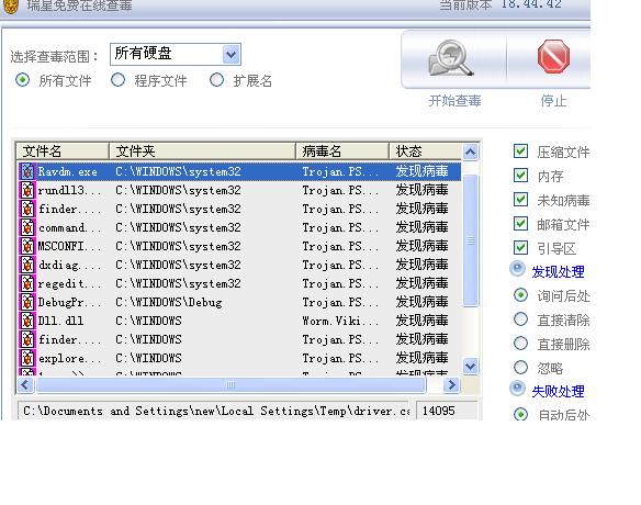 还有,用在线杀毒查到的那些文件我 直接用瑞星杀可不是病毒文件啊,而且明显是我原来的文件