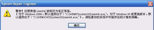 当我用SREng2软件查看启动项目这项时,总是弹出如图所示的提示,请问这是中毒了吗?怎样修复呀?多谢!