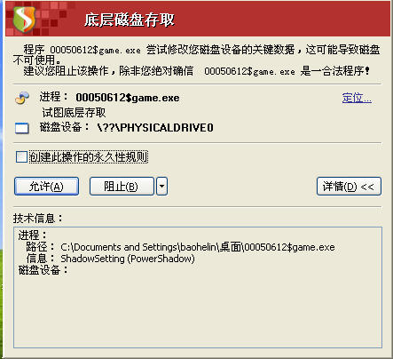 00050612$game.exe试图进行磁盘底层存取操作(图2)。我允许它操作一次。