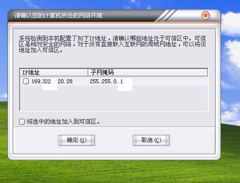 安装防火墙检测到的IP地址是怎么回事?我并没有设置IP地址啊!也没弄网络连接,是否安全?每次安装瑞星防火墙时,都会提示,让选择是否放在可信区。