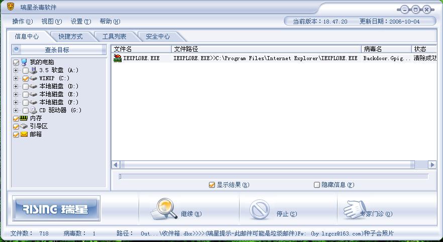 哦 我看到了,是你的油箱里的附件里有病毒,清除OUTLOOK里面的附件吧