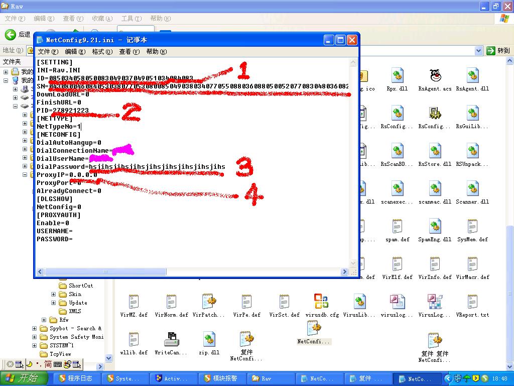 图9:4种组合同时出现:1),(用户)ID后面设了长长一串乱码;2)PID(进程ID)后面加了“278921223”的数字。3),DialPassword加了一大串。