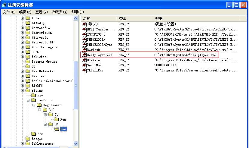 然后把注册表启动项中的C:\WINDOWS\system32\Realplayer.exe的对应项删掉.