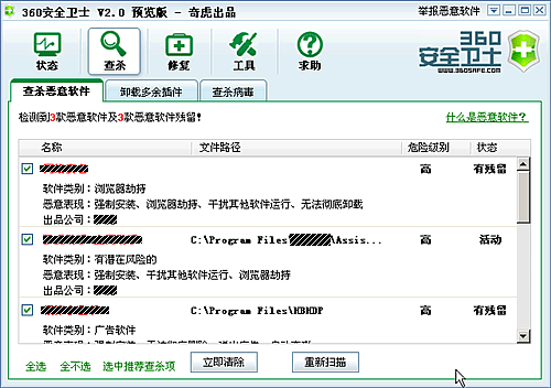题记: 2005年是流氓软件肆虐的开始,在到2006年这短短的一年之中,无数的电脑被流氓软件侵入,给人们的日常生活和工作带来很大的不便,虽然恨之入骨,但是普通的电脑使用者并不能清除掉电脑中的插件,为了能让用户更好的使用自己的电脑,免受流氓软件的困扰,在这里收集并介绍了几款时下使用比较便捷,效果明显的插件查杀软件,将恶意流氓插件赶出您的电脑,还您一个干净的使用环境。