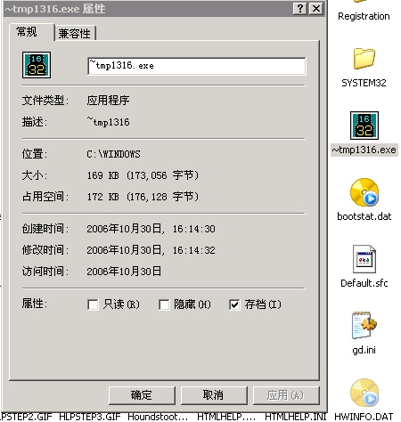 详细内容2006-10-30 16:27:53, 系统禁止本地~tmp1316.exe连接网络的请求,地址为:TCP, 0.0.0.0:1990 => 61.134.84.250:80[WEB网页]程序名称为:C:\WINDOWS\~tmp1316.exe
