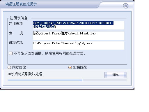 腾讯QQ恶意修改IE主页!!请大家警惕,以下图片为截图,显示了瑞星监控提示……
