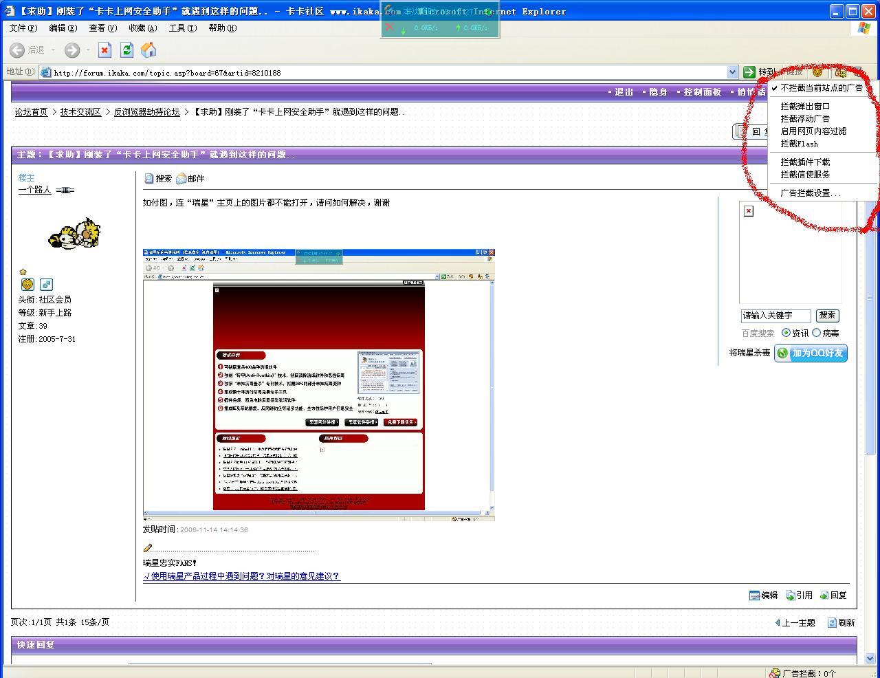 如付图,连“瑞星”主页上的图片都不能打开,请问如何解决,谢谢