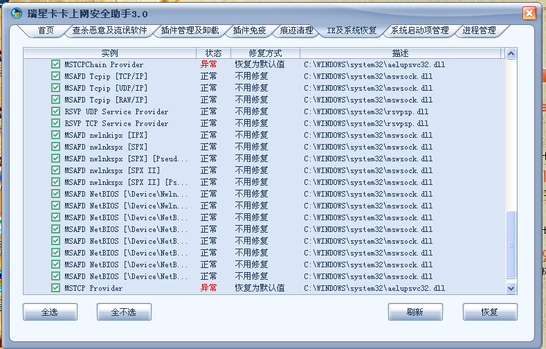 O10 - Broken Internet access because of LSP provider 'c:\windows\system32\aelupsvc32.dll' missing