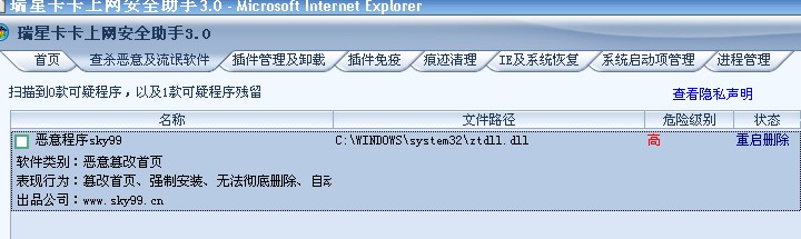 瑞星卡卡安全论坛技术交流区反病毒/反流氓软件论坛 sky99怎么杀都杀不掉,大哥帮忙把~!谢谢``!!!