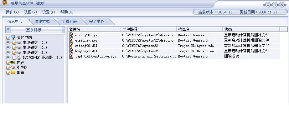 瑞星卡卡安全论坛技术交流区反病毒/反流氓软件论坛 求助:电脑中了Rootkit.ganima.f/h和Trojan.DJ.Agent.zda