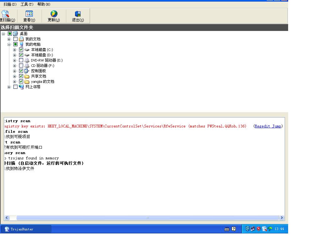 上面提示的英语看不懂,一并传上:regitstry key exists : HKEY-LOCAL-MACHINE\SYSYEM\CurrentControlSet\RfwService (matches PWSteal.QQRob.136) (Regedit ...