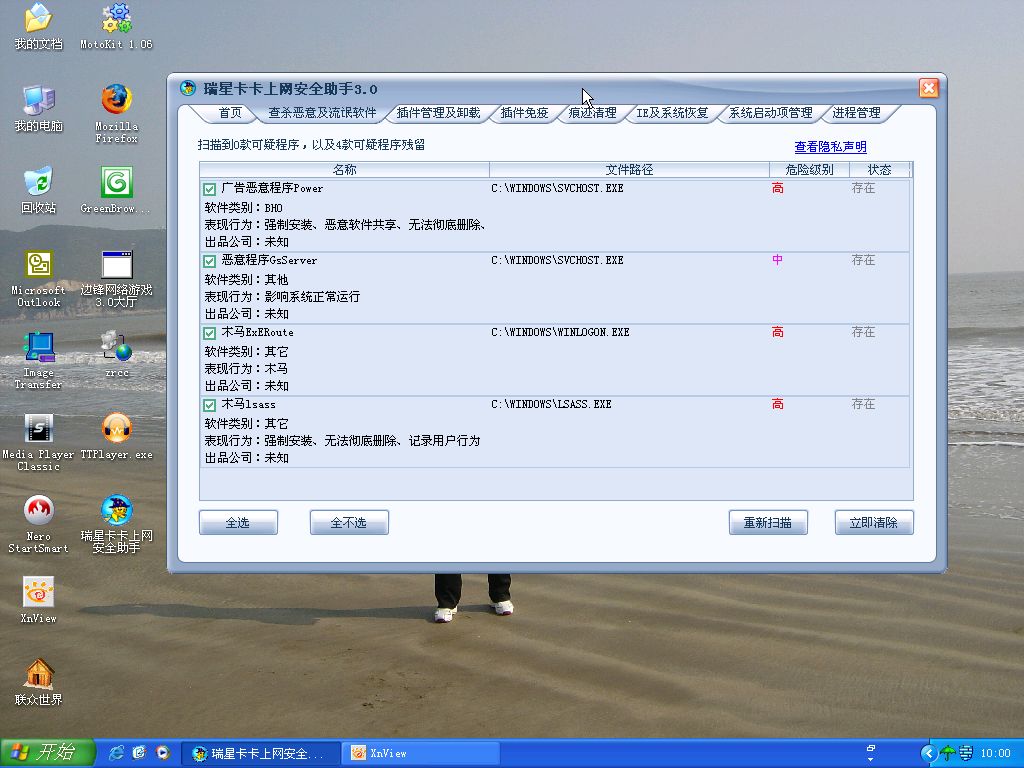卡卡助手查到病毒,但是清除后,开机还有.如图