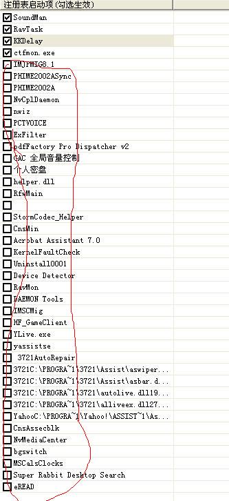 只要曾开机启动的程序,都被列在表上。软件卸载后仍然保留,而且不能删除。。不小心选中后,系统就该找不到文件了。如图: