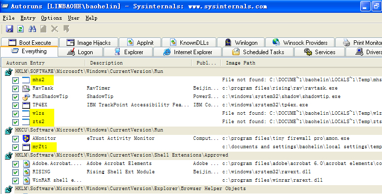 而且会在进程中运行,导致瑞星杀毒软件无法运行,造成本机彻底掉线现象。我的临时解决办法是在C:\W