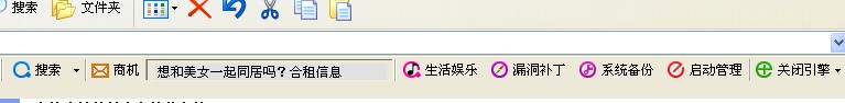 今天我到下了下人PP点点通.安装全..就有大量的.垃圾软件.比如:网络电视,酷站等等.但这些都可以清除.后来我打开'我的电脑"发现速度变慢,看到以下图片的工具条,,而我用卡卡,检测结果是:恭喜您没中毒"用兔子的也检测不到.请高手指见..