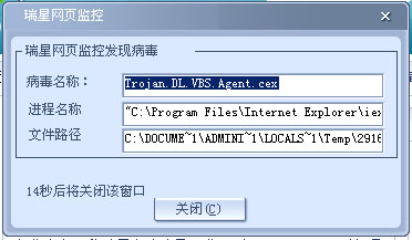我把瑞星报警的窗口拷屏传上去,大家看看。
