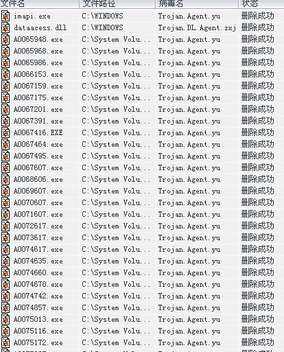2病毒名:Trojan.Agent.yu    也有好多文件被感染了好像... (本人不懂是不是被感染了)