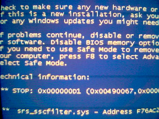 srs_sscfilter.sys - Address.F76AC23E base at F76AB000 . Datestamp 452a8451