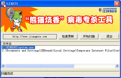 这是我发完帖后用江民专杀杀出来的两个病毒~~用瑞星专杀1.8版就无杀到!!!提提瑞星升级一下吧!!