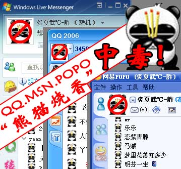 MSN惊现"熊猫烧香"病毒-好友均变"熊猫""QQ和POPO同样染毒
