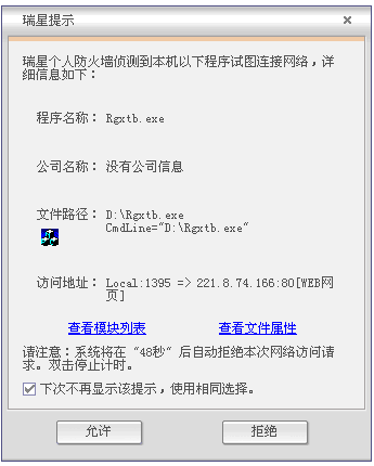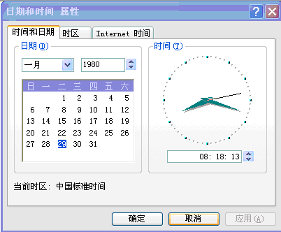 每一次启动电脑时,在登录的界面就会跳一个提示:说你的时候电脑时间和实际时间不一致,需要在控制面板里设置更改时间日期,但我启动后改过了后,过了一会就会跳出一个瑞星提示框提示你是否运行这个程序,这个程序是Rgxtb.exe,我就点拒绝,然后时间又变成了1980年,怎么搞都不搞不好,请版主帮我一下,谢谢!!!!!