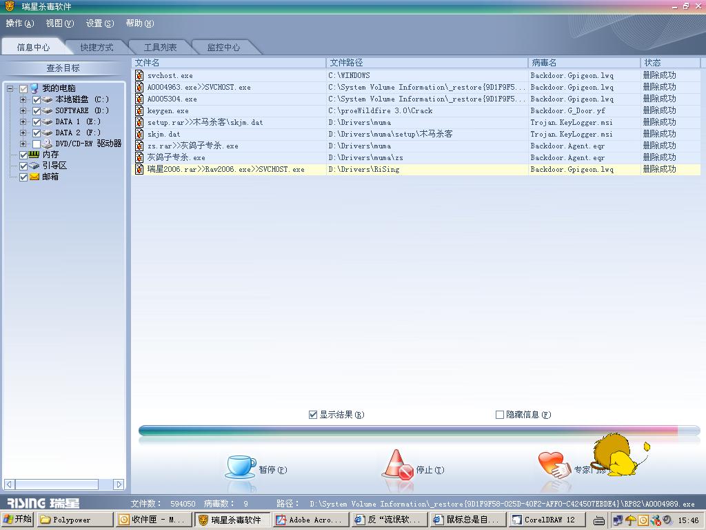 我在使用Rising杀毒是怎么把自己给杀掉了,看图片,为什么会这样