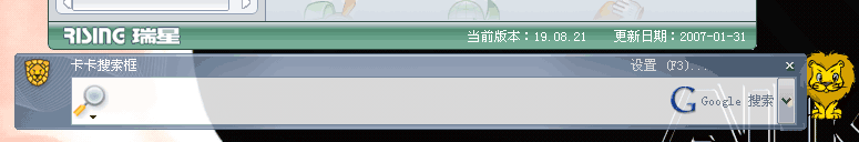 本人用瑞星有三四年的时间了,一直对瑞星信任有佳,是瑞星的支持者,但就在今天,开机弹出小狮子后,无意点了一下小狮子,谁知弹出一个谷歌的搜索框来,我一直是手动在线升级,一切升级过程都在我的监督下完成的,但我从未发现有任何提示安装谷歌搜索插件的提示,请问一下,卡卡的这种行为算不算是一种"流氓行径"如果版主没人回答还请其它高手指点谢谢!!