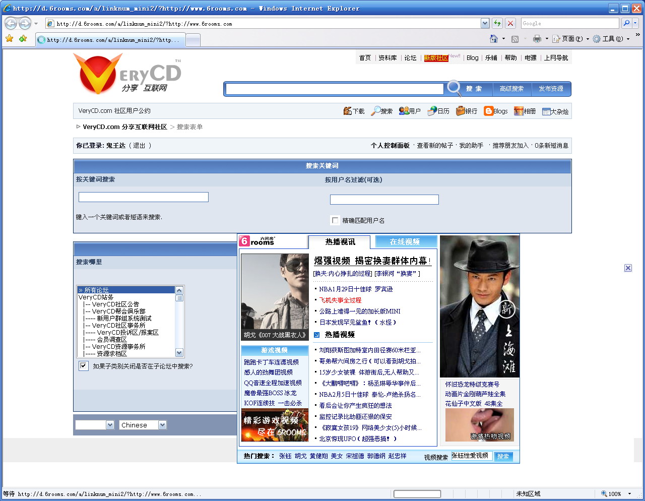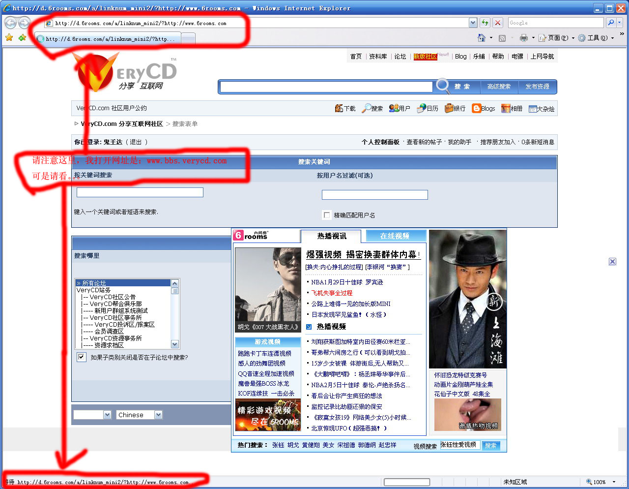 最近几日,用IE打开网页时,偶尔就会出现这个广告,什么六间房的,(鼠标点击广告区域任何部位都会链接到www.6rooms.com域名下的网址),我到网上查了一下,他们总裁居然说过他们每日点击量几百万,完全是靠口口相传,从不做任何形式的广告...看的我都无语了.
