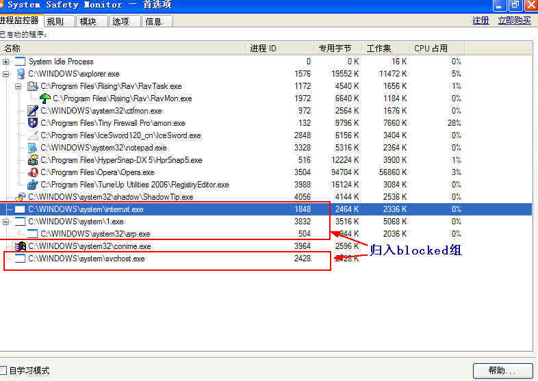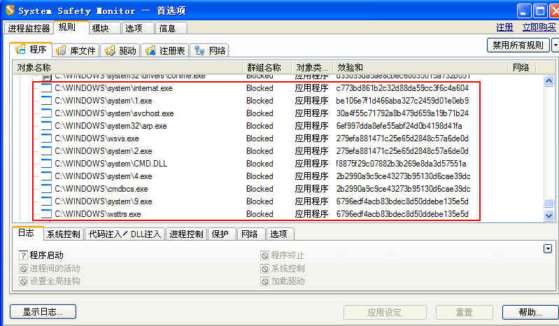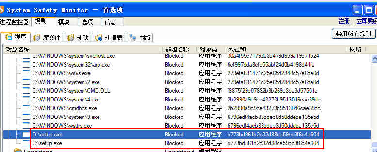 除了根目录下的setup.exe以外的其它东东(在SSM进程列表中出现;进程自动/被动结束后被移入blocked组)