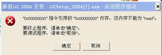 安装新浪UC聊天软件时提示说内存不能被Read,中毒了吗?