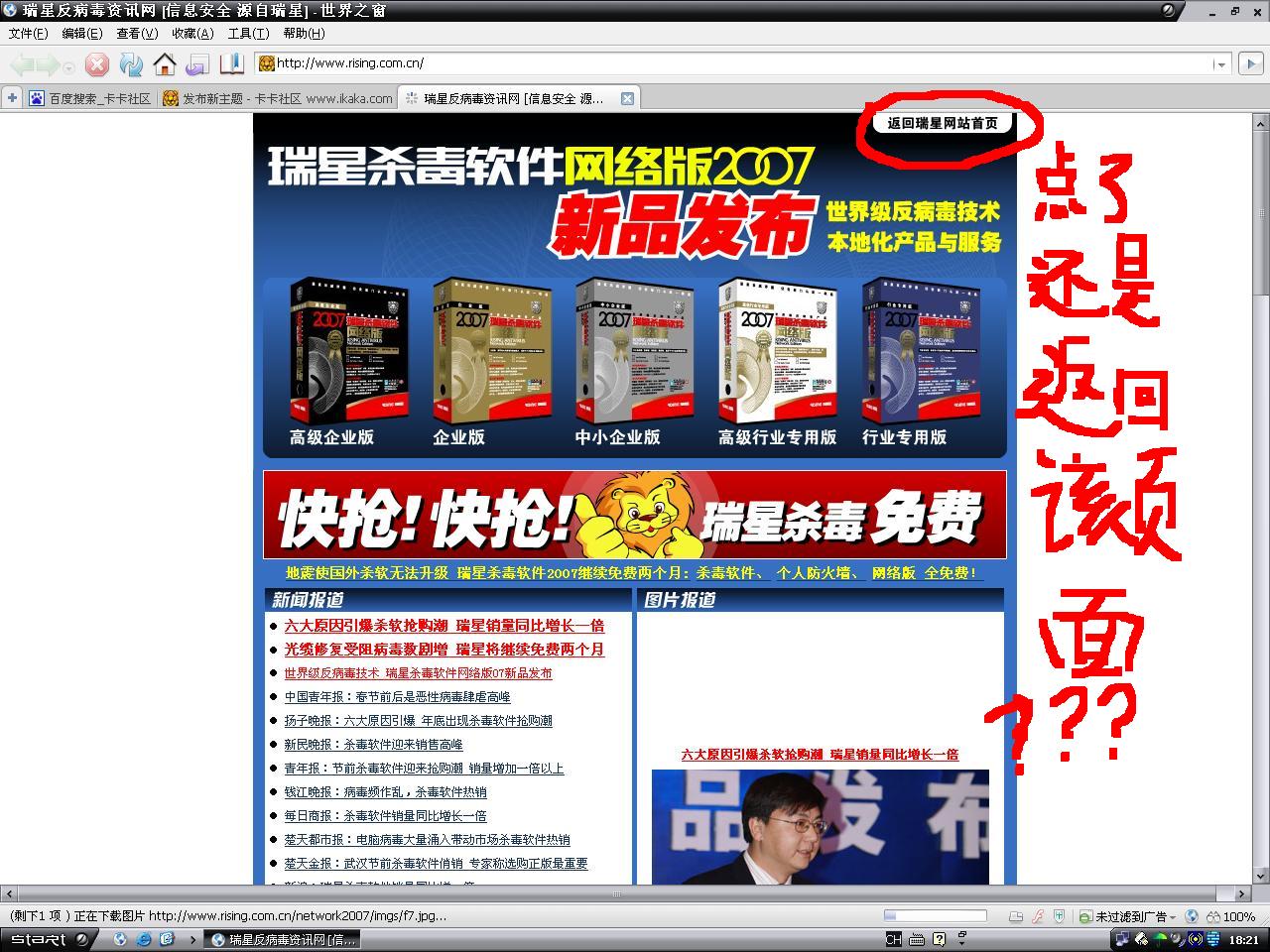 答不开瑞星主页,点击“返回瑞星首页”就出现:瑞星网站更改,正在跳转。。。