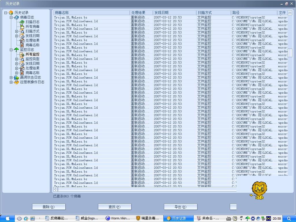 863个病毒,楼主怎么感染的?注意杀毒的时候请断开网线在安全模式下查杀,多次清理不完有可能是系统中有病毒服务,仔细检查