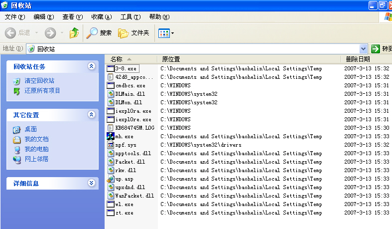 3、卸净所有被插进程中的各个病毒模块后,删除所有病毒文件(图3)。