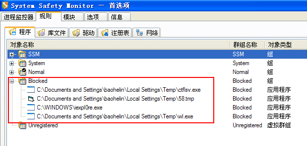 2、根据SRENG日志提示,用IceSword卸净插入各应用程序进程中的病毒模块(图2)