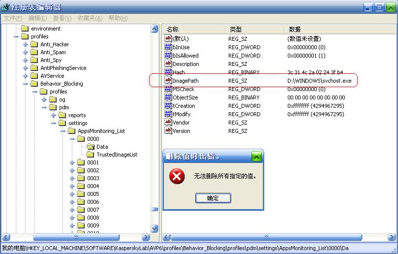【求助】[U]发现病毒的注册表项,但是删不掉?[/U]