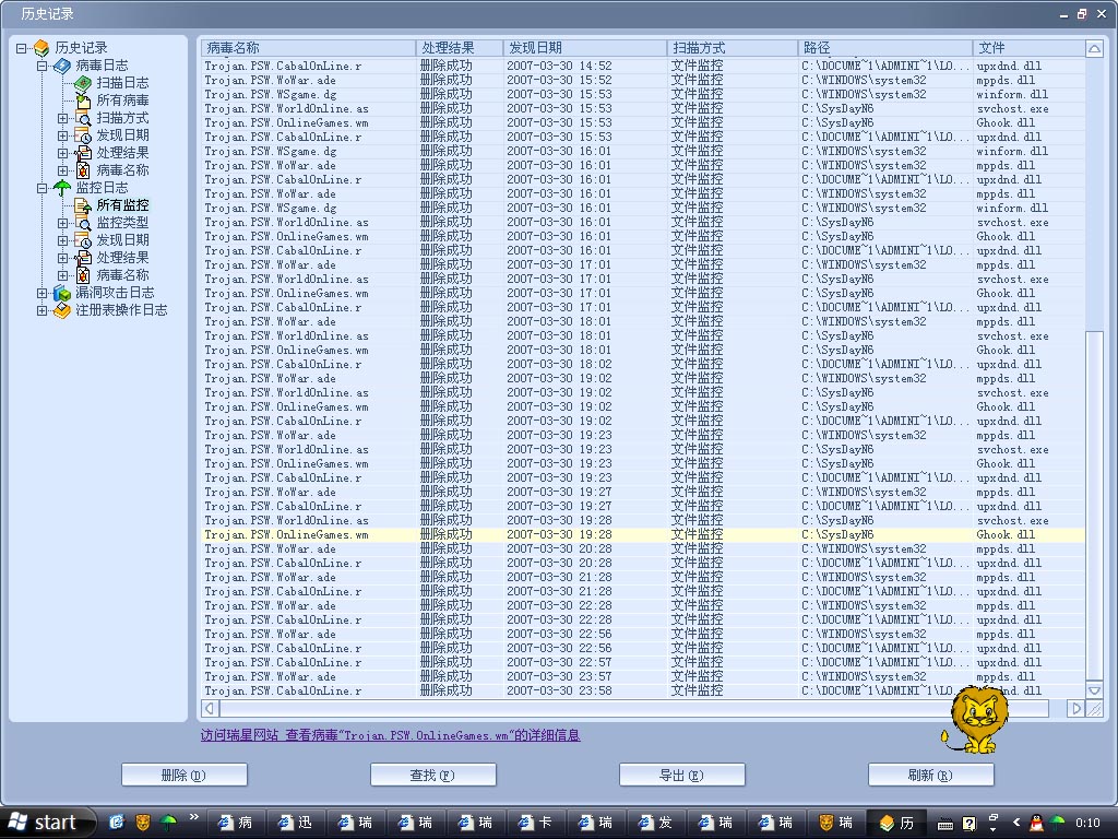Trojan.PSW.CabalOnLine.r和Trojan.PSW.WoWar.ade和Trojan.PSW.OnlineGames.w紧急求助!!!!!这是病毒名称 频频发作。.我用的是个人版的瑞星.扫了一边,但不行还是老发作..求助解决办法