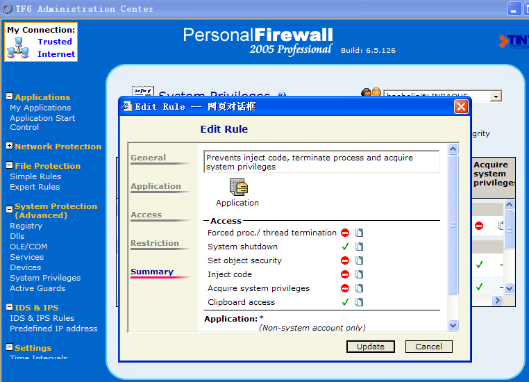 (1)在Tiny防火墙的规则中加入下图所示的规则一条,作为第一道防线。加上Tiny中的IDS(默认)、AD、FD、RD规则(自设),基本可以挡住大多数病毒。