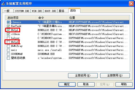 昨天中毒后我重装了系统,好像还是有毒。启动项里里面有两个nvcpl,前面的那个两个nvcpl每次开机后自动更改注册表,强行加载`,请各位高人看看是怎么回事~