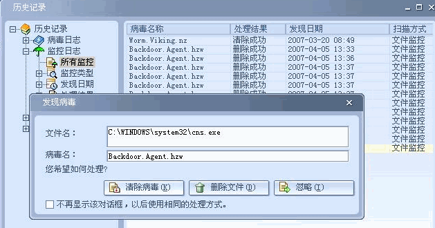 杀毒后又生成的cns文件,但瑞星查没有毒。