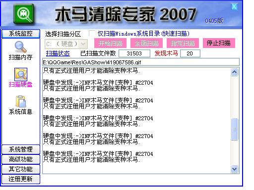 【回复“冰雪聪蓉”的帖子】刚下载了个木马清除专家,查出来好多木马变种,如Net-Wobic.k TorjanCliker.Agent.th 还有易趣广告安装包的变种,就是刚才发的图上说的那样,那是不是真的啊,我差点要付钱清除了.