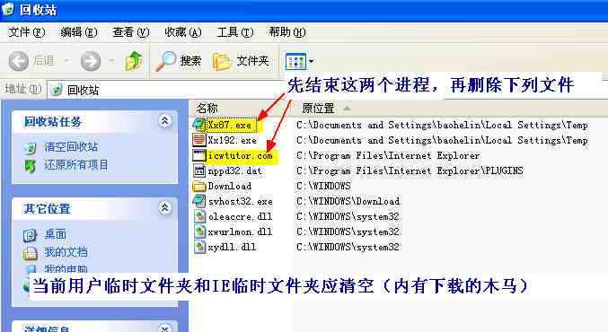 1、先结束以下两个进程,然后删除!Xx87.exe、icwtutor.com