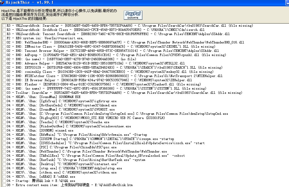 http://www.skycn.com/soft/13334.html使用方法:在我提供的那个网页上下载hijackthis,使用时选择“扫描系统并保存日志”,然后将检测报告发上来