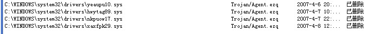 c:\windows\system32\drivers\quakedrv.sys 这个自己确认一下,没装过Quake之类的游戏?就删除之。