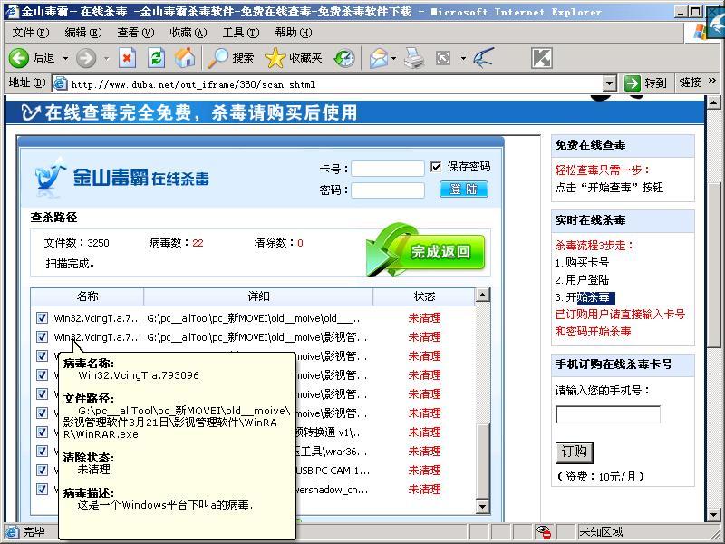 中了win32.vcingT.a.793096新病毒,瑞星查不到,用金山杀不了!!