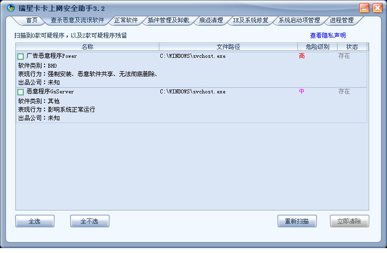 我用瑞星都杀不掉,一重起就有。