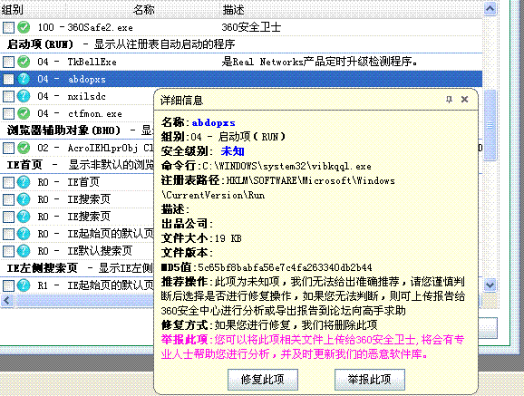 其他应用软件运行无事!瑞星杀毒软件,360安全卫士点击打开后主要会出现两个进程1,vibkqql.exe,2,xnrwedt.exe,且vibkqql.exe进程无法停止!