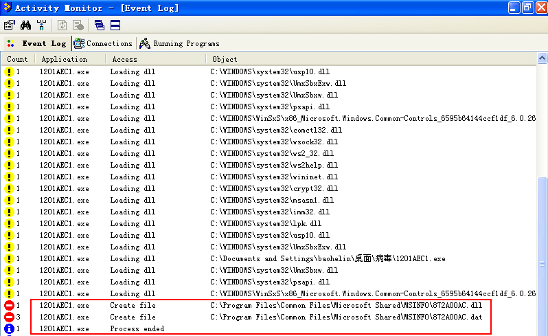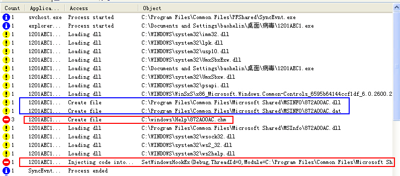 2、有了上面那条规则,即使不幸遭遇worm.pabug.db,结果也不过如此:病毒仅在C:\Program Files\Common Files\Microsoft Shared\MSInfo文件夹释放了两个病毒文件;企图在C:\WINDOWS\Help文件夹释放另一个病毒文件的动作已被Tiny的“windows文件夹防护规则”禁止了。