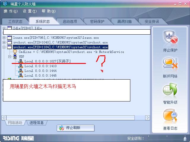 UDP1027端口开启就表示有灰鸽子木马吗?有瑞星防火墙图,请帮忙