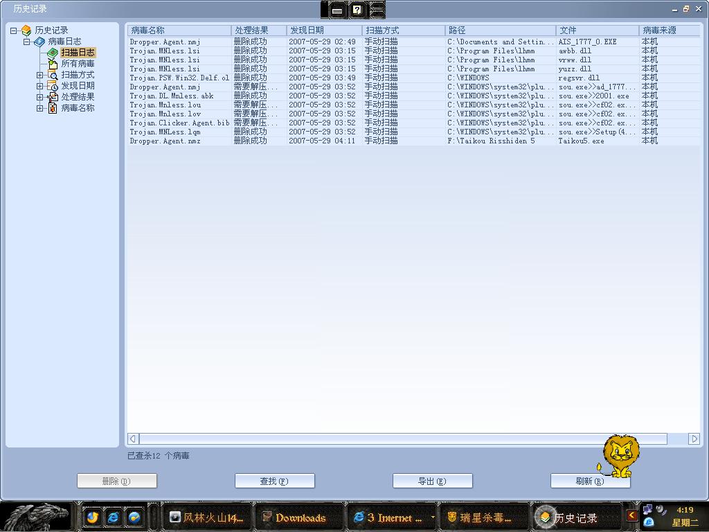 今天升級了瑞星之後殺毒,結果最後掃描的時候刪除了我F盤的太閣立志傳5的遊戲啓動程序@_@